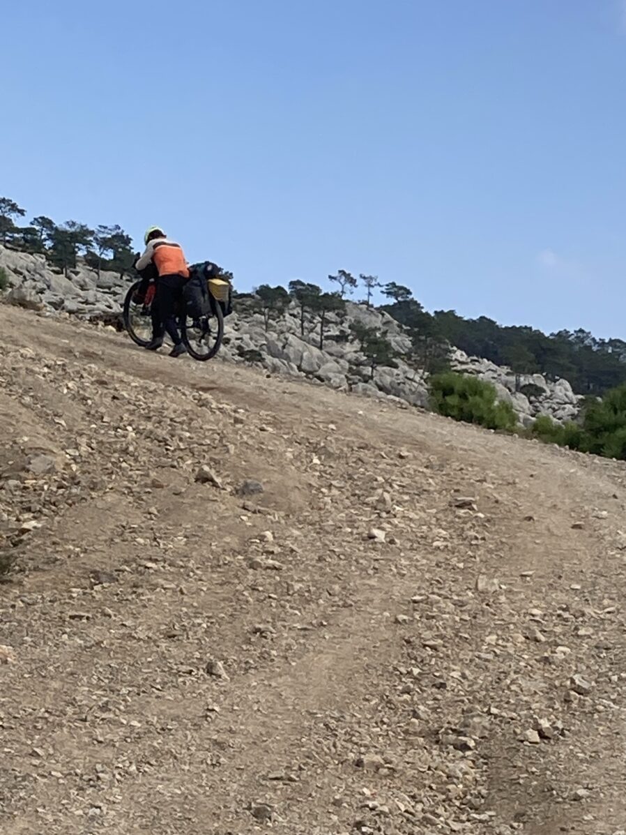 One aspect of the trip that has loomed for us the entire time is that our friend Tim Halder and his partner Sarah have also been riding the route, but they started a few days ahead of us and then – also getting roasted by the Rif Mountains heat – jumped ahead by bus. It’s been great staying in touch with them because they are providing great beta for us, but we wanted to connect with them! So we made a bit of a push and veered a bit more onto (good!) pavement and finally caught them yesterday!