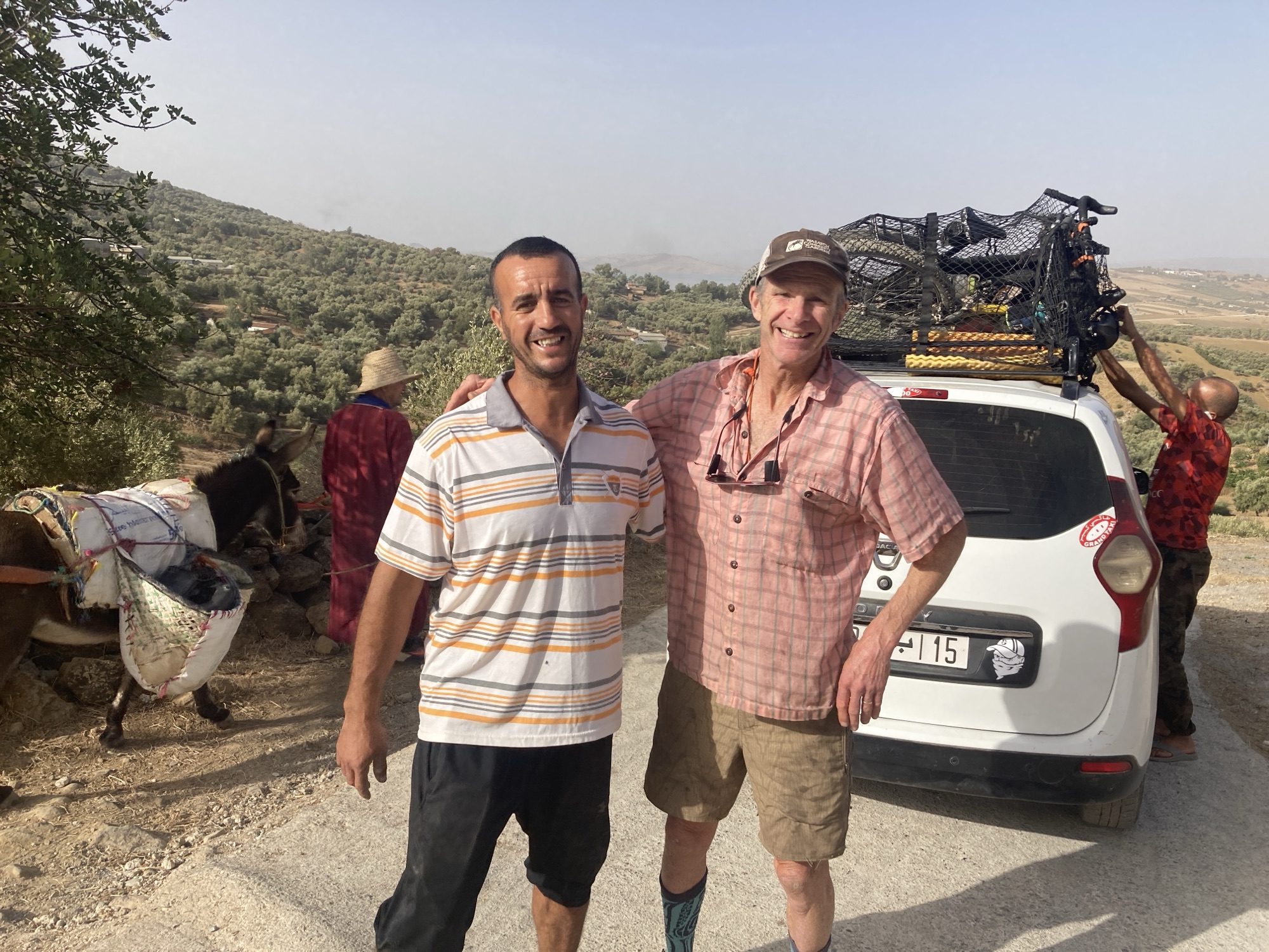 We had booked a room/auberge nearby in anticipation of indeed getting delayed on the boat, and it turned out to be good planning; though it was not far away, it was a few hundred meters above sea level, and the grades getting up there were super steep; a good introduction to many of the roads we were to encounter in northern Morocco. We arrived at the Sanae House, where a short Moroccan woman came out to welcome us; I was surprised that her English was so good and said so, and she said “that’s because I’m English!” So hers was better’n mine.