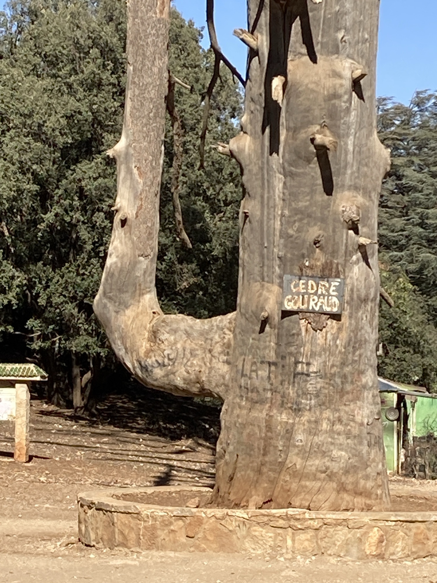 Out of Fez we had a long gradual climb into the Mid-Atlas mountains, and finally we got up over 4000 feet and the temps – and humidity, finally farther from the sea? – moderated a bit. We ended that day in Ifrane, which they call “Little Switzerland”, which is probably a little optimistic but is clearly kind of an enclave for rich Moroccans to hang with each other? Supposedly there’s a ski resort there, and though it’s nicely forested, we literally didn’t see any hills that one could ski on…..