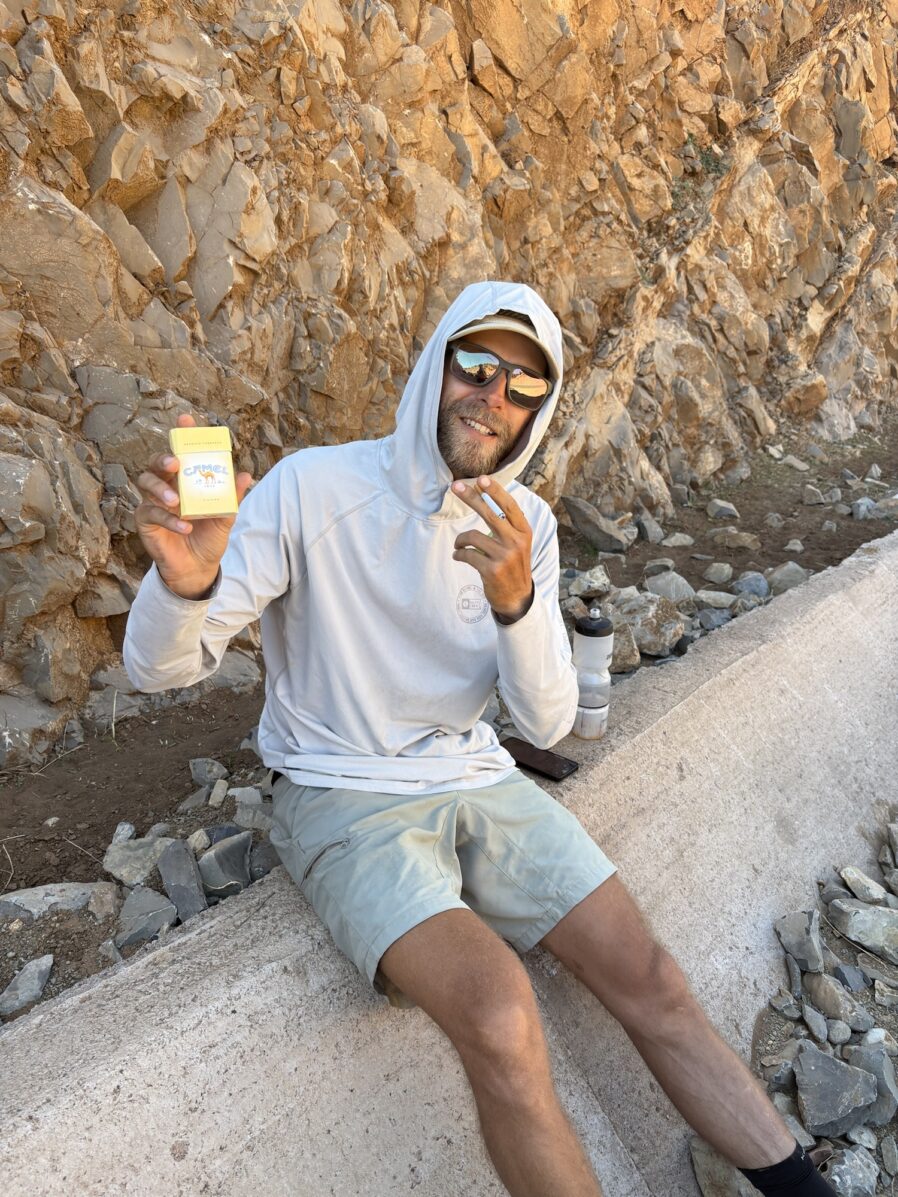 And the next day we finished the climb around noon in a cold wind, where we were finally able to put on some of the cold weather gear we’d hauled all through the heat of our trip: