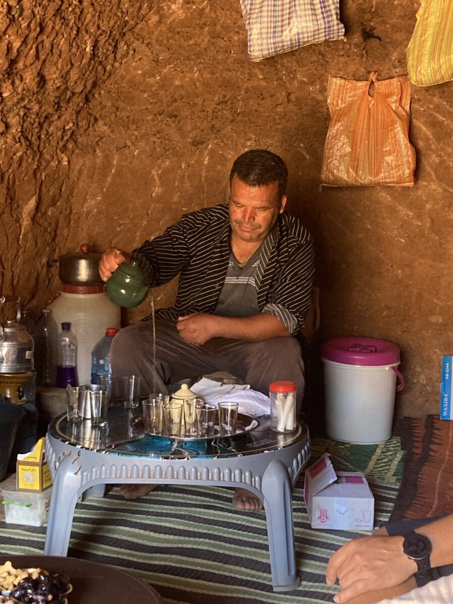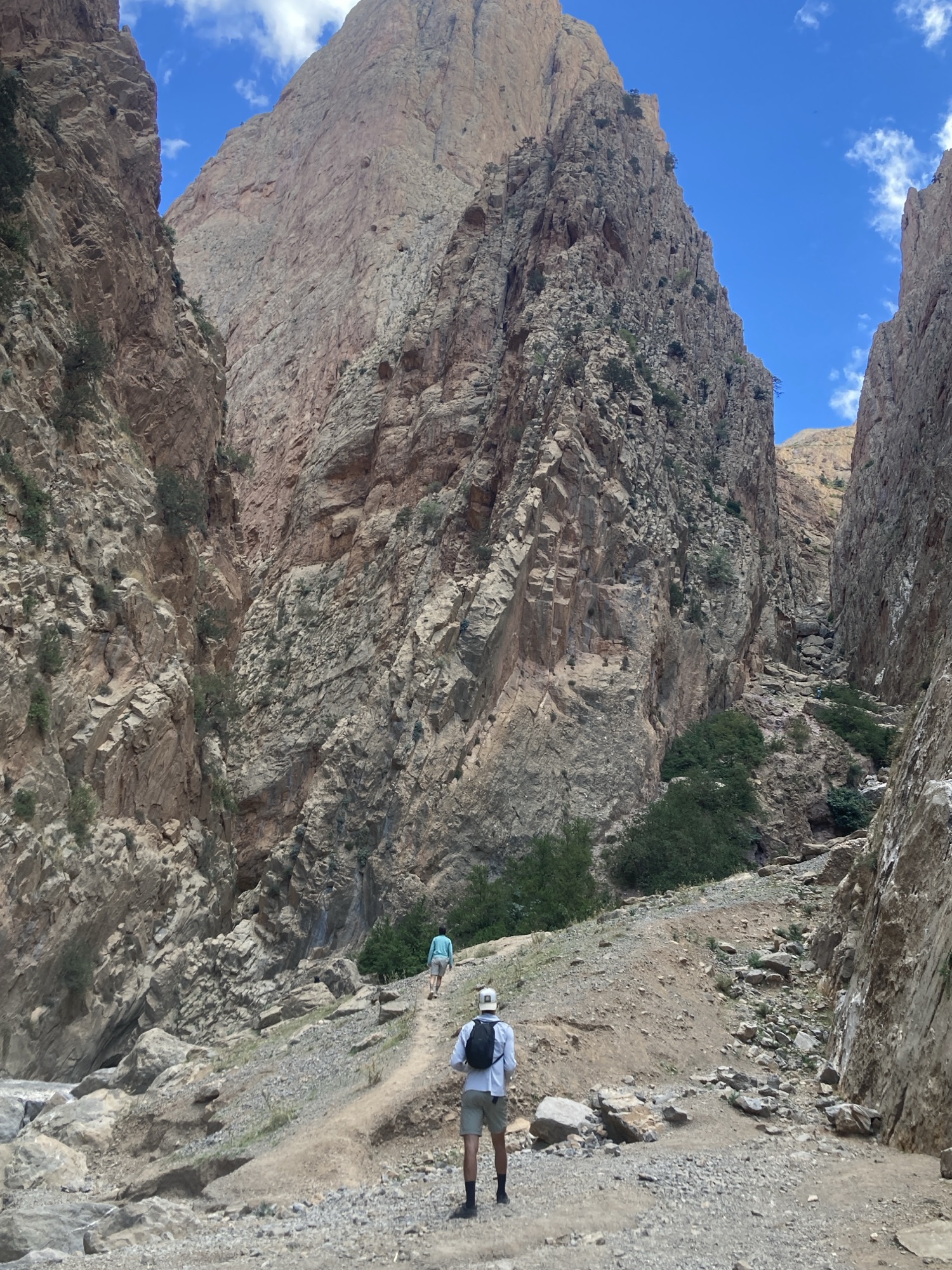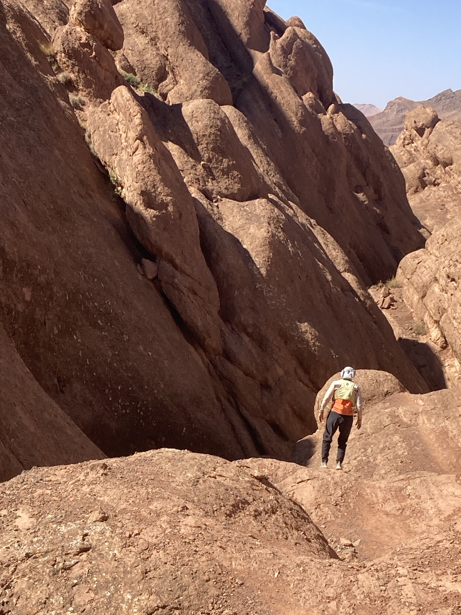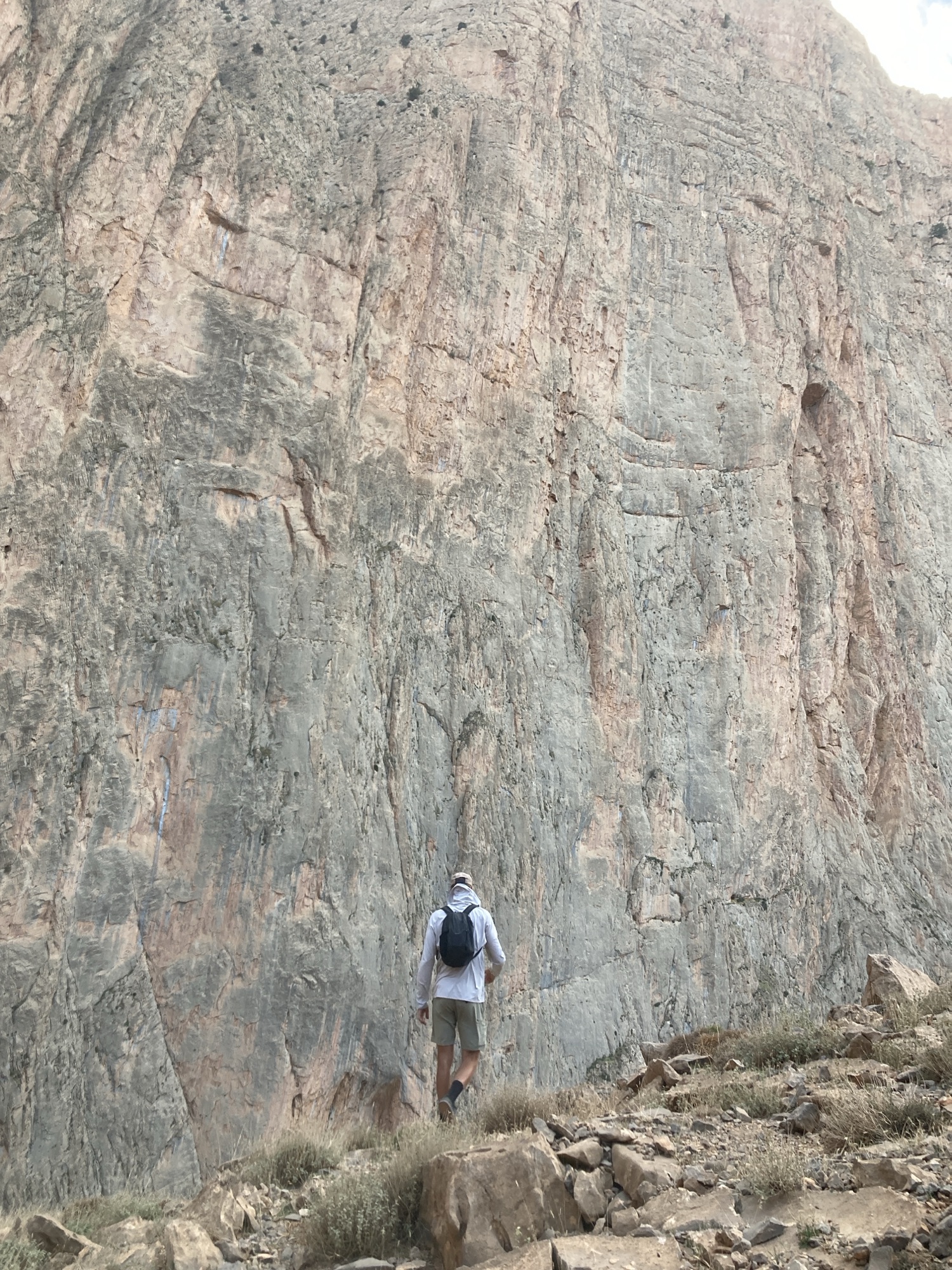 The village of Taghia is tiny; indeed, it’s barely more than a few houses, and the rugged gravel road going into this box canyon was only created a few years ago; prior to that climbers took mules up there from the slightly bigger town of Zaouiat Ahansal where Kris and Chloe live (Chloe is the director of a nonprofit that empowers local women to have better lives than simply slaving !` in the fields). The main Taghia guest house is run by Said; we assumed that he would kind of be a climber dood from Marrakech or somesuch who would be renting gear and dispensing climbing beta, but turns out that Said is a local village guy who’s built out a house big enough to house a maybe 30 or so climbers a night, that he fortifies with good food. And rare for Morocco, he is able to provide breakfast very early, since many of the climbs require steep approach hikes and are upwards of 20 pitches! Said takes it all in stride and – like so many Moroccans, is super humble, quiet, and helpful, and I would bet he’s a legend in the adventurous-climber community.