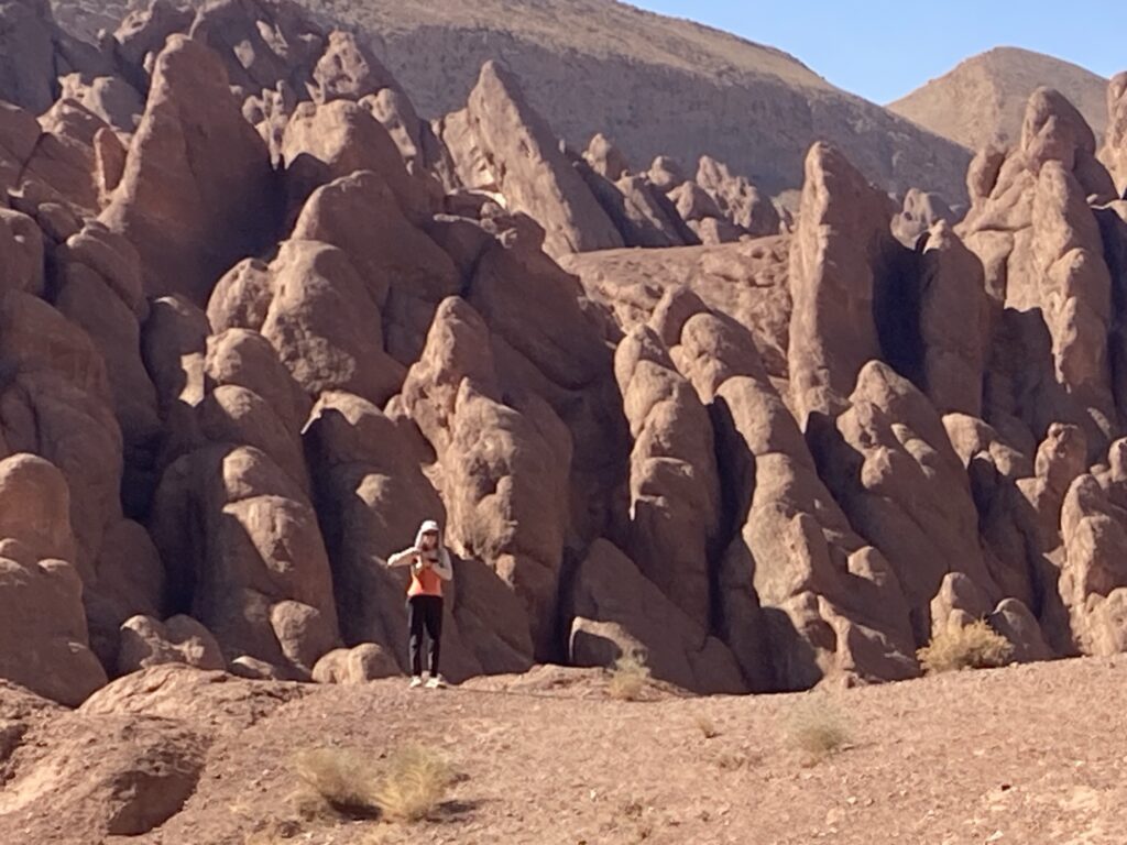 There are a few primary tourist zones in Morocco: the cities (Fez, Marrakesh, and a few others), the deep Sahara desert, and a couple of cool gorges called Todra and Dades. We caught up with Tim and Sarah in the lower bit of the Dades gorge (where a Zion-like canyon gives way to “a broader “Fig Valley”) and it happened that a small hotel where we stayed with Tim and Sarah was the jumpoff for a well-known hike into the “Monkey Fingers” canyon that’s a tributary of Fig Valley. We took a rest day and hiked up the canyon, and for a while felt like we were in familiar terrain of desert slot canyons: