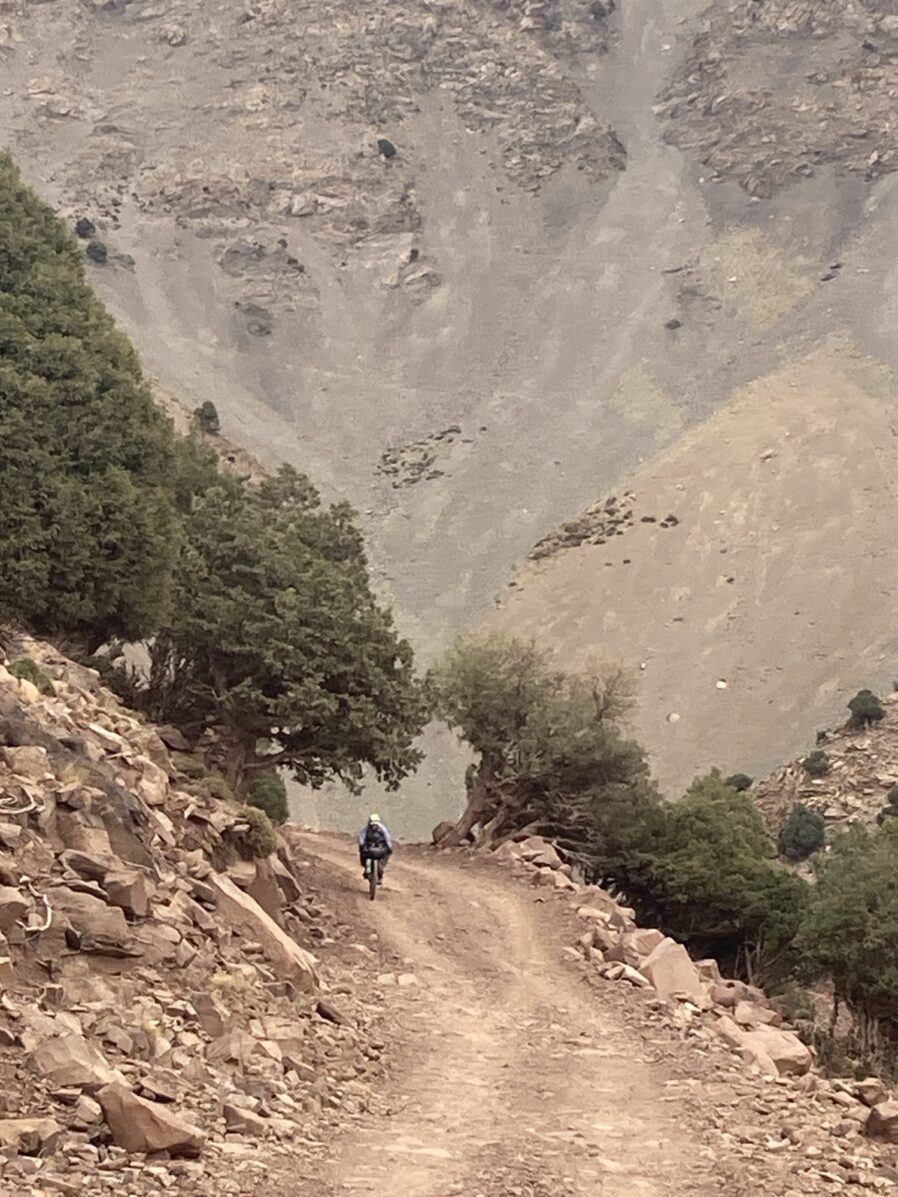 And launched into a steep, gorgeous gravel descent towards Marrakech:
